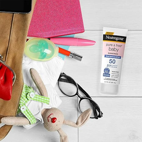 Kem chống nắng khoáng chất Neutrogena Pure & Free Baby có chỉ số chống nắng phổ rộng SPF 50 & Kẽm oxit, chống nước, không gây dị ứng & không gây cay mắt cho bé, 3 fl. oz, 3 gói