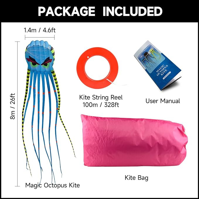 • ?Lựa chọn hoàn hảo: Với vẻ ngoài tươi sáng và đáng yêu, con diều bạch tuộc này là món quà hoàn hảo cho cả người lớn và trẻ em. Cho dù đó là sinh nhật, lễ Phục sinh, lễ hội thả diều, kỳ nghỉ hè hay buổi dã ngoại của trường, nó sẽ mang lại niềm vui và những khoảnh khắc hạnh phúc. Nó không chỉ mang lại niềm vui mà còn giúp phát triển sức mạnh, sự phối hợp và sự tập trung trong khi chơi.