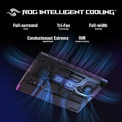 • LÀM MÁT THÔNG MINH ROG – Strix G16 được trang bị kim loại lỏng Conductonaut Extreme của Thermal Grizzly trên CPU và quạt hút thứ ba cùng nhiều tính năng cao cấp khác, giúp duy trì hiệu suất tốt hơn trong các phiên chơi game dài.