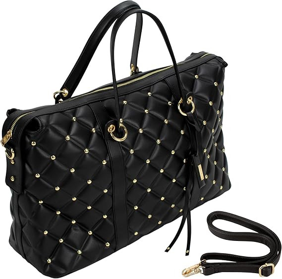 Túi du lịch cuối tuần bằng da thuần chay chần bông Badgley Mischka Modern dài 20" x rộng 8" x cao 13"