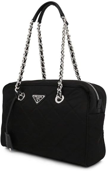 • Chiếc túi Prada đen bóng này toát lên vẻ thanh lịch. Chất liệu nylon được trang trí họa tiết chần bông và logo hình tam giác Prada tráng men bạc mang tính biểu tượng.