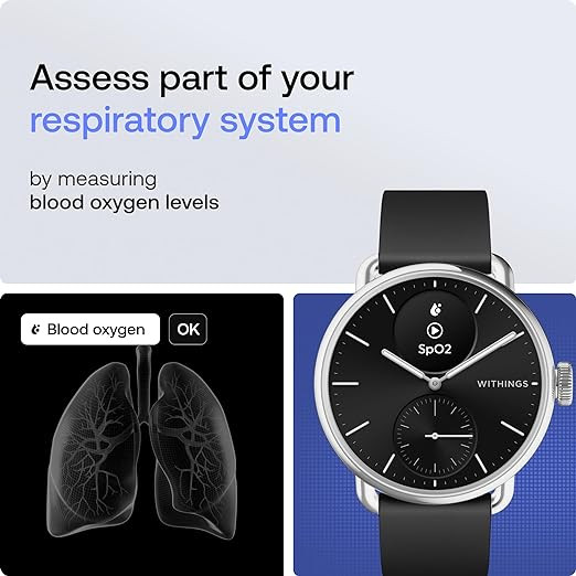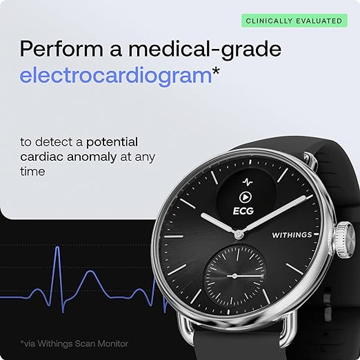 Withings ScanWatch 2 - Đồng hồ thông minh lai, Theo dõi nhịp tim, Theo dõi sức khỏe, Theo dõi chu kỳ, Theo dõi giấc ngủ, Theo dõi GPS, Tuổi thọ pin 30 ngày, Tương thích với Android và Apple, HSA/FSA
